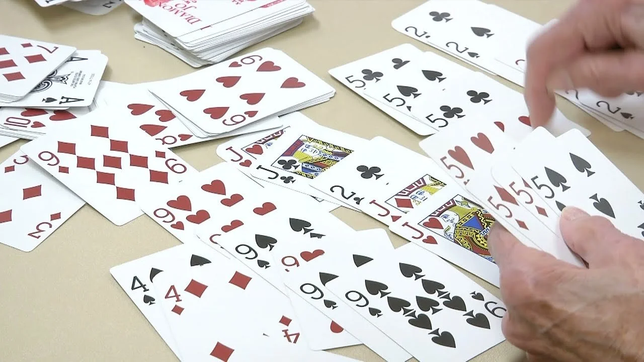 This is a canasta game, much like Hand & Foot. It is played with 7 decks of cards. Sometimes the game is known as Hand, Knee, and Foot.
